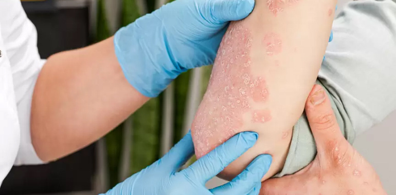 Psoriasis is a chronic autoimmune skin disorder that causes red, scaly patches. In Ayurveda, it is classified as Kitibha Kushta, a type of skin disease caused by an imbalance in Vata and Kapha Doshas, along with the accumulation of toxins (Ama) in the blood.